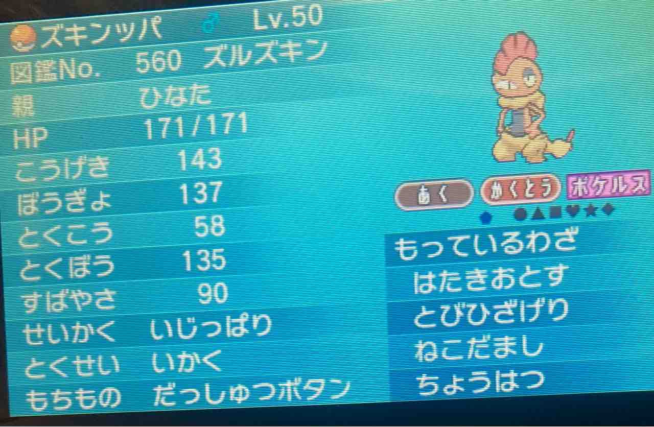 飛び膝蹴り採用なため、HBを171の奇数+威嚇込みでアローの鉢巻ブレバ確定耐え、Sは控えめニンフィアの調整先(追い風下108族+2)の実数値89抜きの90、残りA。