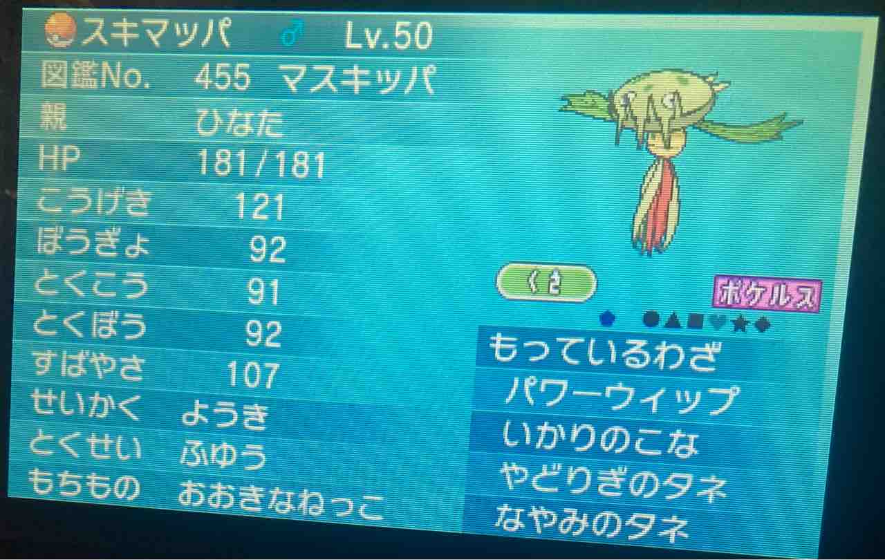 当初はモジャンボだったが、浮いてる草タイプで怒りの粉、宿木の種、悩みの種を使えるマスキッパに行き着いた(BV鑑賞会の時にざわさんにアドバイスもらった