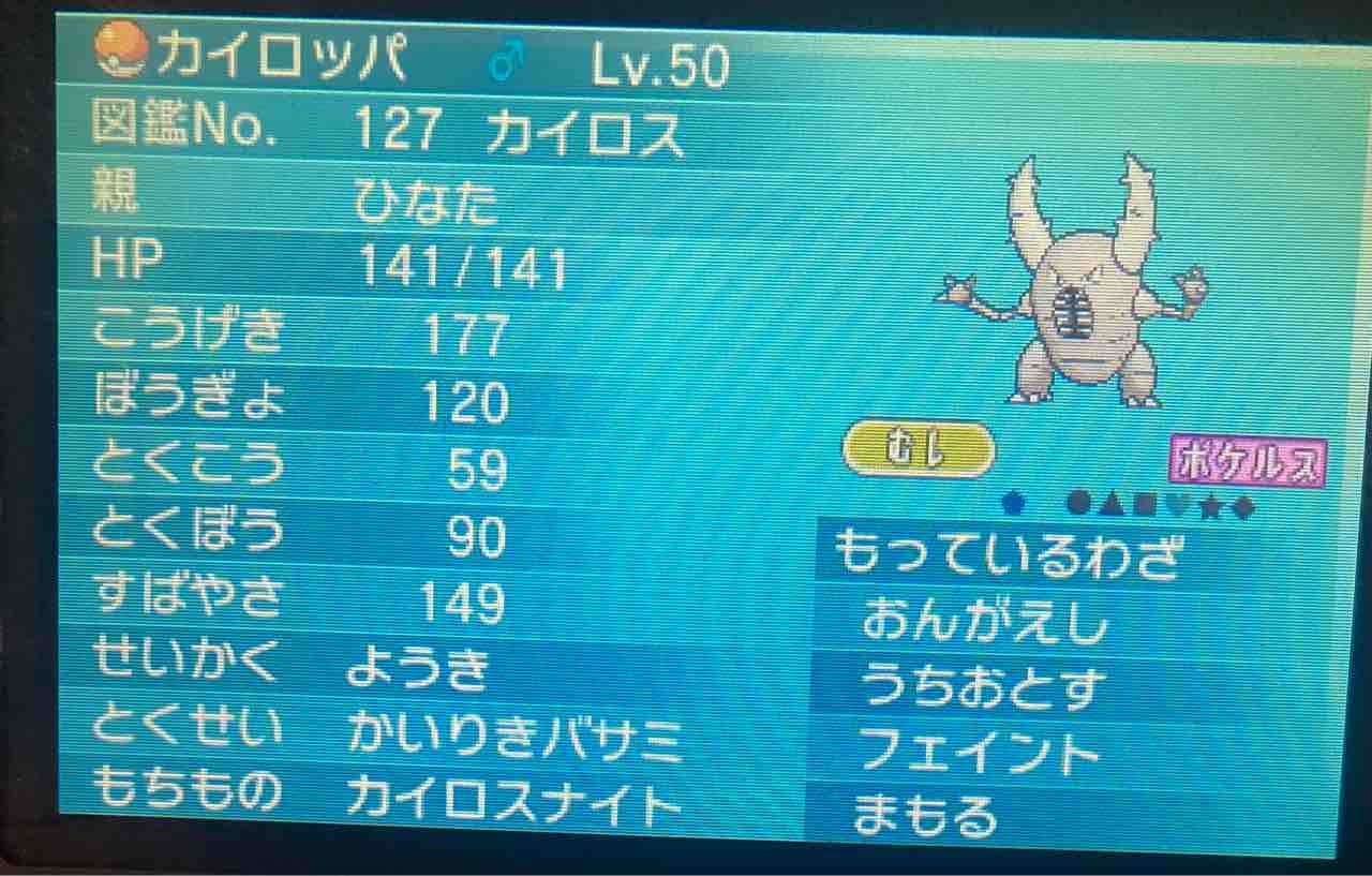 フェイントと撃ち落とすを覚えられるカイロスが最後に構築に入ってきた。